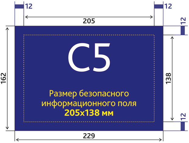 Размер безопасного информационного поля 205x138 мм (где будет текст, логотип);